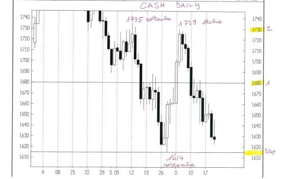 Per evitare di perdere soldi, primo obiettivo di tutti noi, chi, come me, ha comprato nella zona a suo tempo indicata nella lettera n.3 (1630 – 1640 ) deve assolutamente mantenere lo stop loss a 1618.