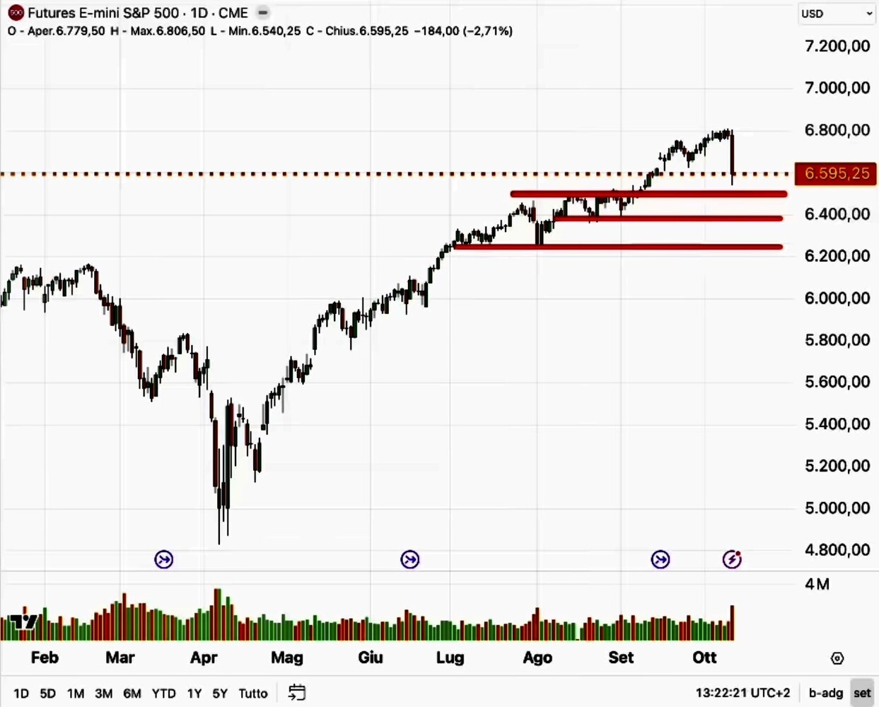 Ovviamente perché si innesti un vero e proprio trend ribassista occorre infrangere supporti importanti (evidenziati dalle linee rosse) e questo non è certo che succederà, ma il rischio è concreto e le ragioni vanno ben al di là delle esternazioni del presidente.