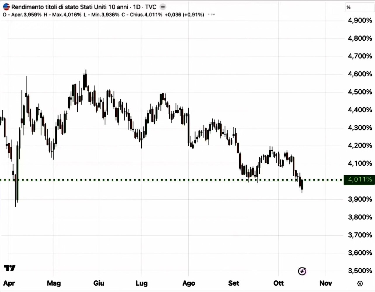 Anche i rendimenti espressi dal reddito fisso sono scesi un filino, più che altro perché le vendite dei titoli azionari hanno dato luogo ad acquisti dí quelli obbligazionari. La qual cosa è tuttavia un secondo segnale “non-negativo”, perché indica che gli investitori stanno riposizionandosi su un approccio meno speculativo ma non stanno fuggendo dai mercati finanziari, come l’ascesa strepitosa del prezzo dell’oro e degli altri metalli preziosi poteva far pensare.