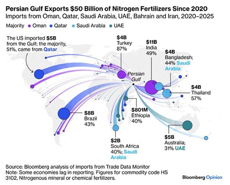 I danni alle infrastrutture petrolifere di stoccaggio e raffinazione del Medio Oriente quindi si aggiungono alla scarsità di petrolio greggio derivante dal blocco di Hormuz e divengono il vero ago della bilancia perché riducono ulteriormente le disponibilità complessive di prodotti energetici e servono anche per produrre fertilizzanti. Gli USA dipendono dal Golfo Persico per il 51% dell’azoto e l’India per l’89%. Questo si sta già traducendo automaticamente in rialzi anche dei prezzi alimentari.