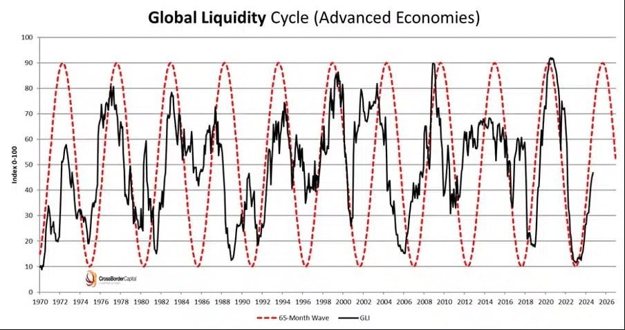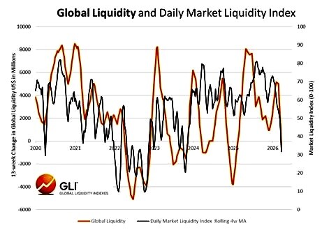 Secondo alcuni inoltre la durata del ciclo globale della liquidità è di circa 65 mesi e aveva raggiunto il suo picco a metà del 2025. Dunque oggi sarebbe in fase discendente e questo incrementa la turbolenza dei mercati. Questo suggerisce che il lungo ciclo di rialzo delle borse potrebbe essere definitivamente terminato. Gli investitori osservano l’incremento della volatilità dei mercati finanziari e la riduzione della sua liquidità e diminuiscono di conseguenza il loro ottimismo cercando rifugio contro l’inflazione monetaria.