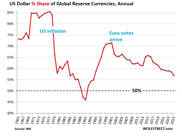 Secondo alcuni inoltre la durata del ciclo globale della liquidità è di circa 65 mesi e aveva raggiunto il suo picco a metà del 2025. Dunque oggi sarebbe in fase discendente e questo incrementa la turbolenza dei mercati. Questo suggerisce che il lungo ciclo di rialzo delle borse potrebbe essere definitivamente terminato. Gli investitori osservano l’incremento della volatilità dei mercati finanziari e la riduzione della sua liquidità e diminuiscono di conseguenza il loro ottimismo cercando rifugio contro l’inflazione monetaria.